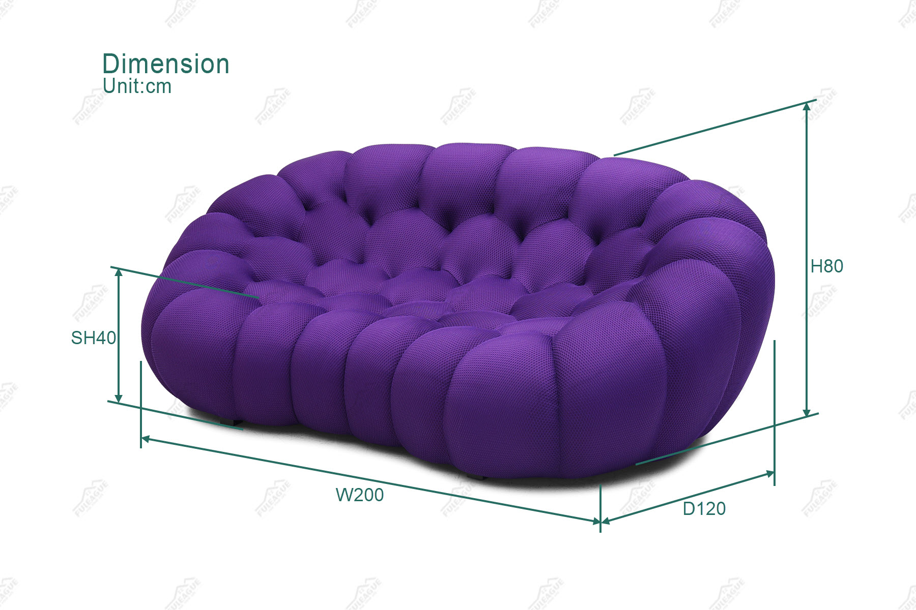 Bubble Curved 2.5-Seat Sofa Replica in Mesh Fabric FA346-2.5S-F Specifications