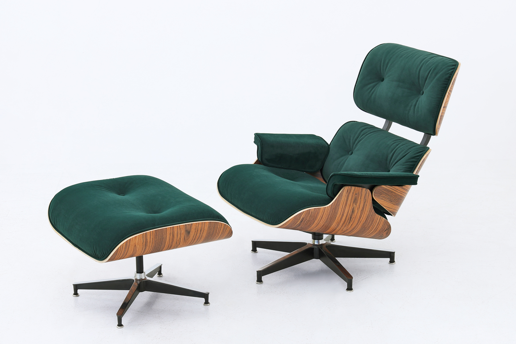 eames lounge chair replica in green velvet fabric and rose wood