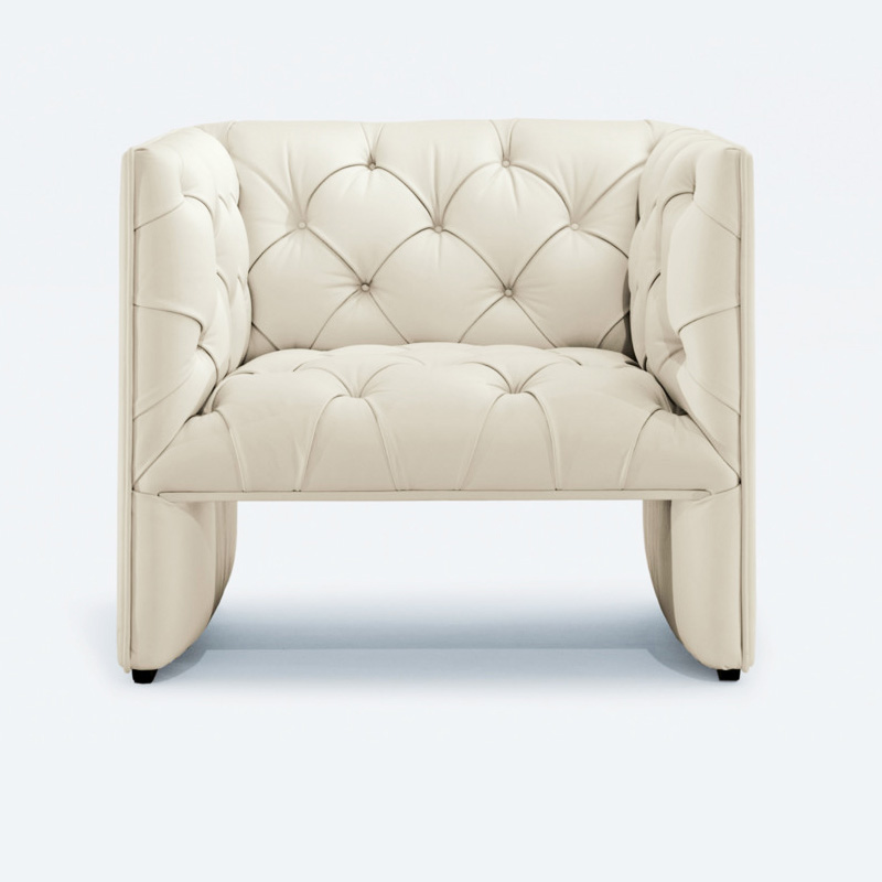 Edwards sofa group by Paris-based American architect Edward Tuttle dating back to 1981, caught the imagination of the Wittmann team all over again because its individualistic approach has lost none of its freshness. Edwards is making its comeback as an armchair, sofa and chaise longue. Its unique appearance derives from the tension between inside and outside created by the exquisite workmanship of the deep-buttoned upholstery on the interior and the smooth external surfaces. This duality is particularly attractive in the chaise longue because of the transition from interior to exterior.