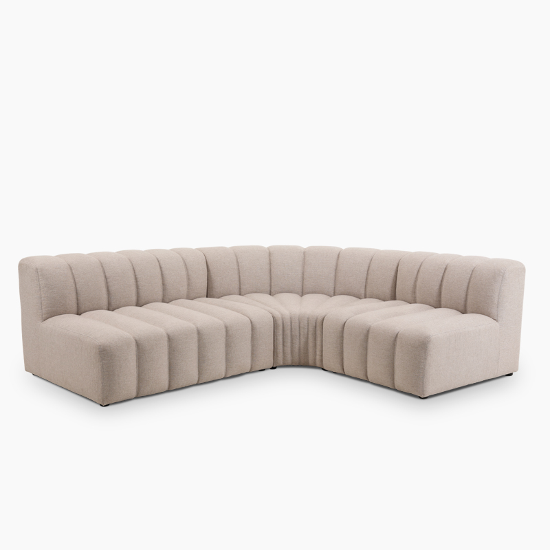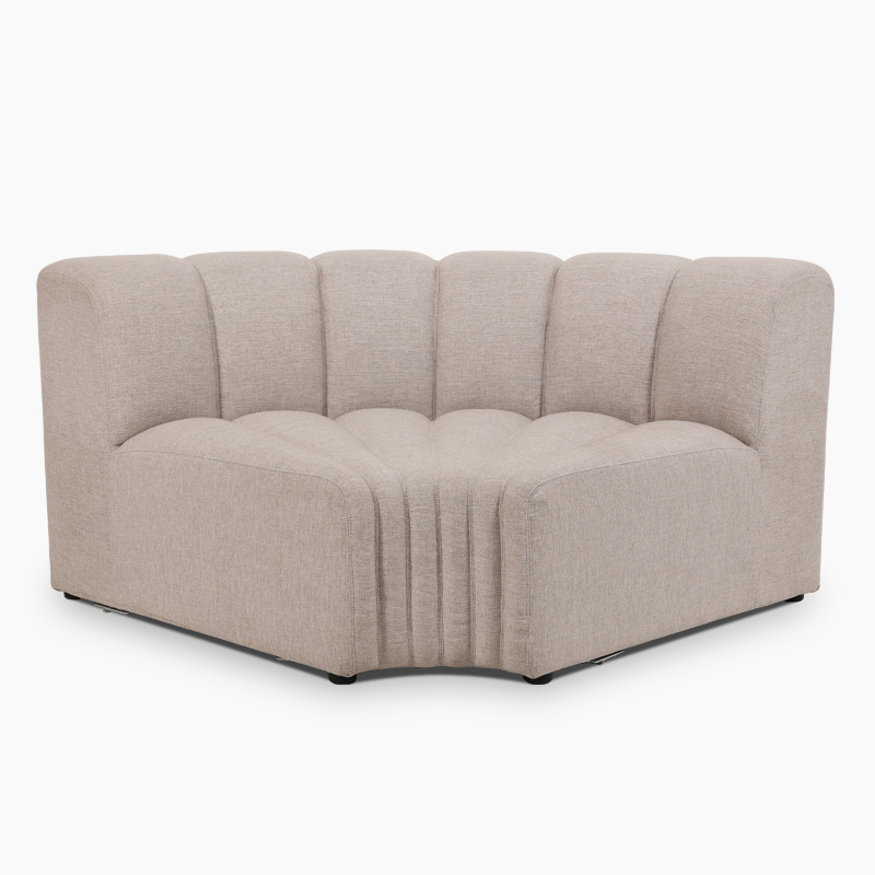 The modern modular sofa was designed in 2021 by Kristian Sofus Hansen and Tommy Hyldahl. Characterized by fluted upholstery, each sofa is designed with soft lines for an aesthetically pleasing design. The modular system can be constructed in different shapes and styles, suitable for domestic or public spaces.