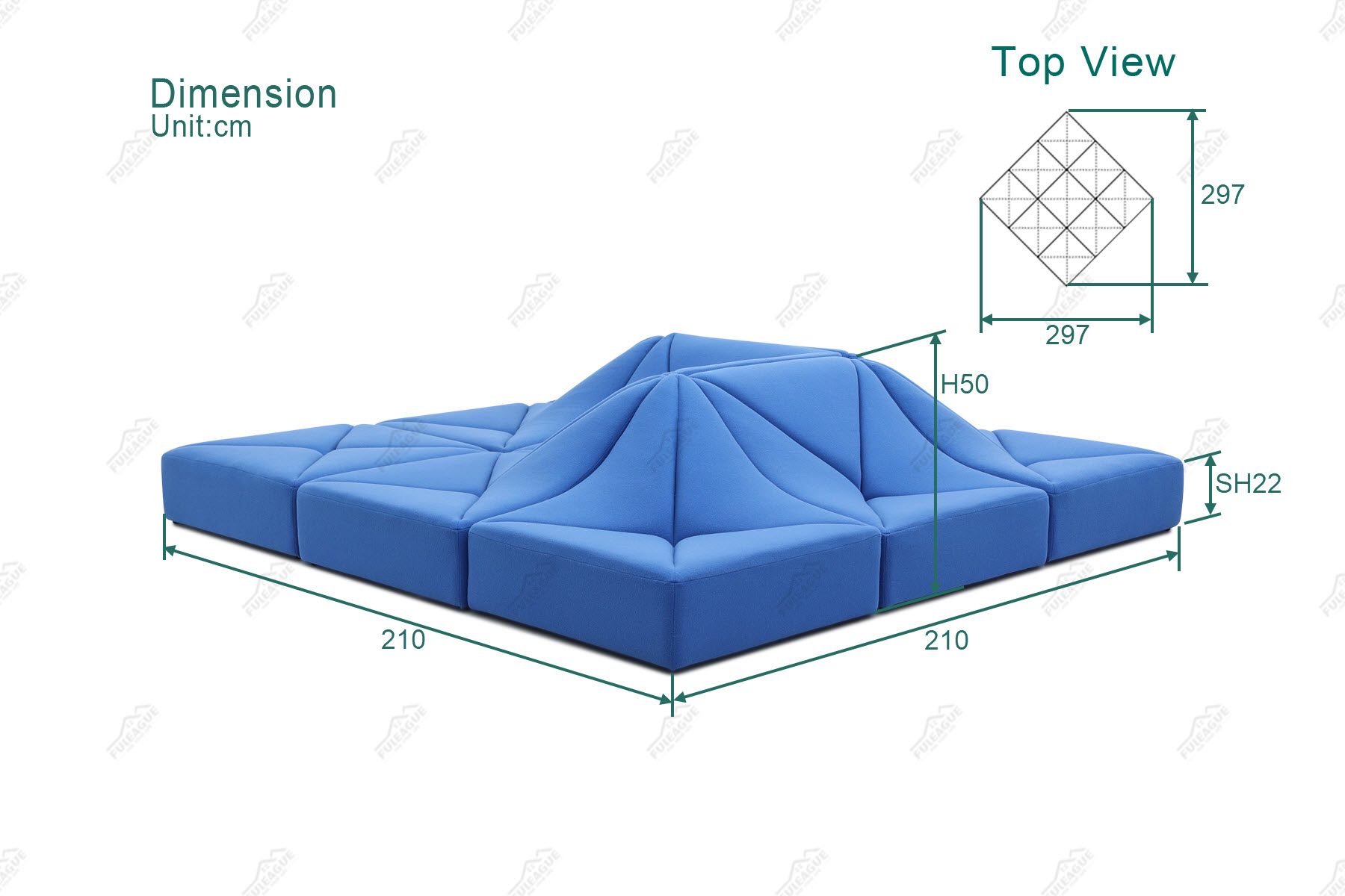 Corner Sofa With Armrest(FA399-Corner-F),Armless Corner Sofa(FA399-Armless Corner-F),Low Back Sofa(FA399-1S-F) each module dimensions: W70xD70xH50cm, Seat Height22cm Packing Size:73x73x53cm