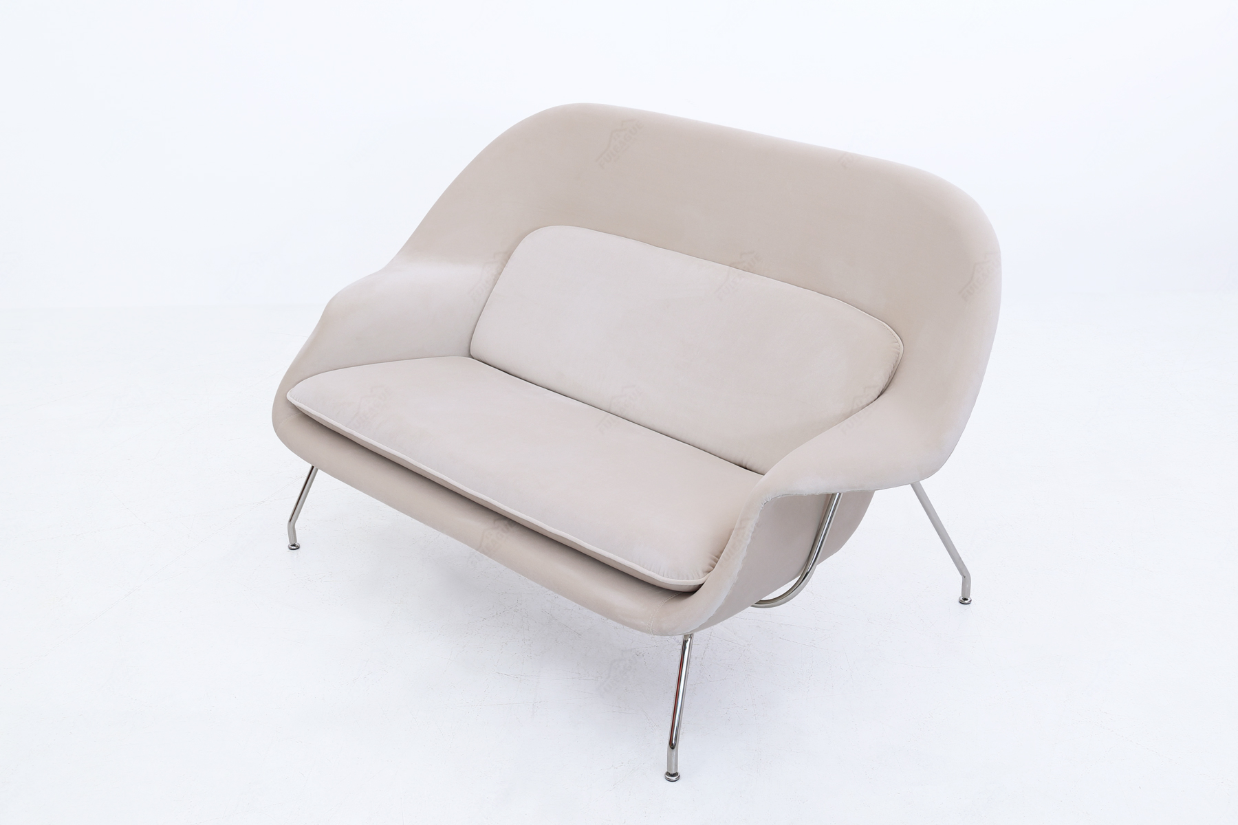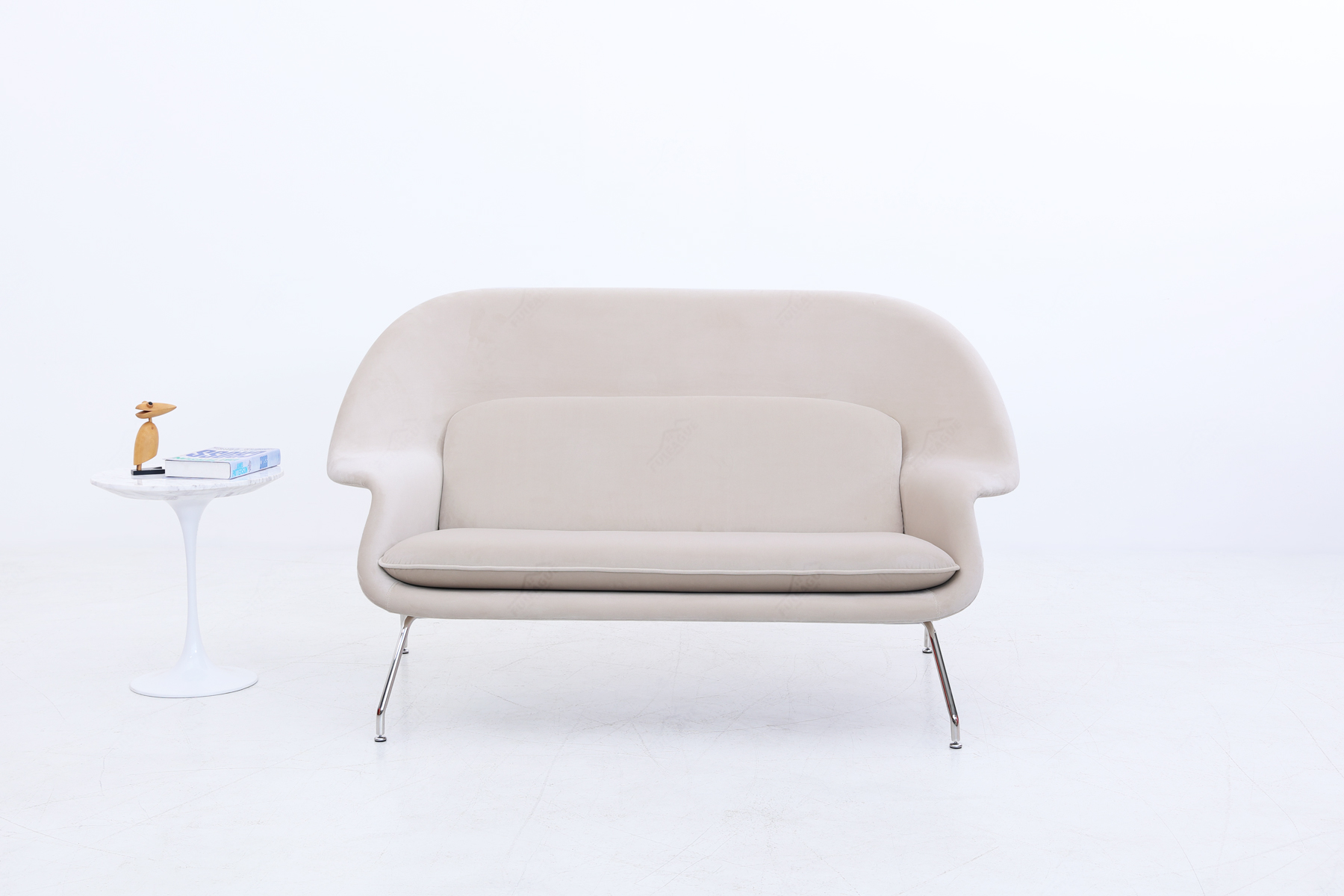 Designed by Eero Saarinen, the Womb Sofa is one of the most recognized representatives of mid-century modernism. The seat shell is made of molded fiberglass covered with foam and equipped with soft sponge cushions, presenting an elegant and smooth curve. The unique shape is not only beautiful, but also provides excellent comfort, as if being gently embraced, bringing you a natural and relaxing sitting experience.