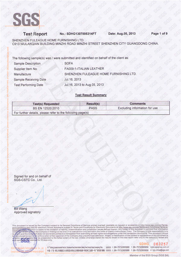 SGS Certificate for Products